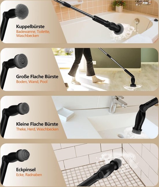 Sayene Vloerschrobborstel, 4-in-1 Tegelkuip, Schrobber
