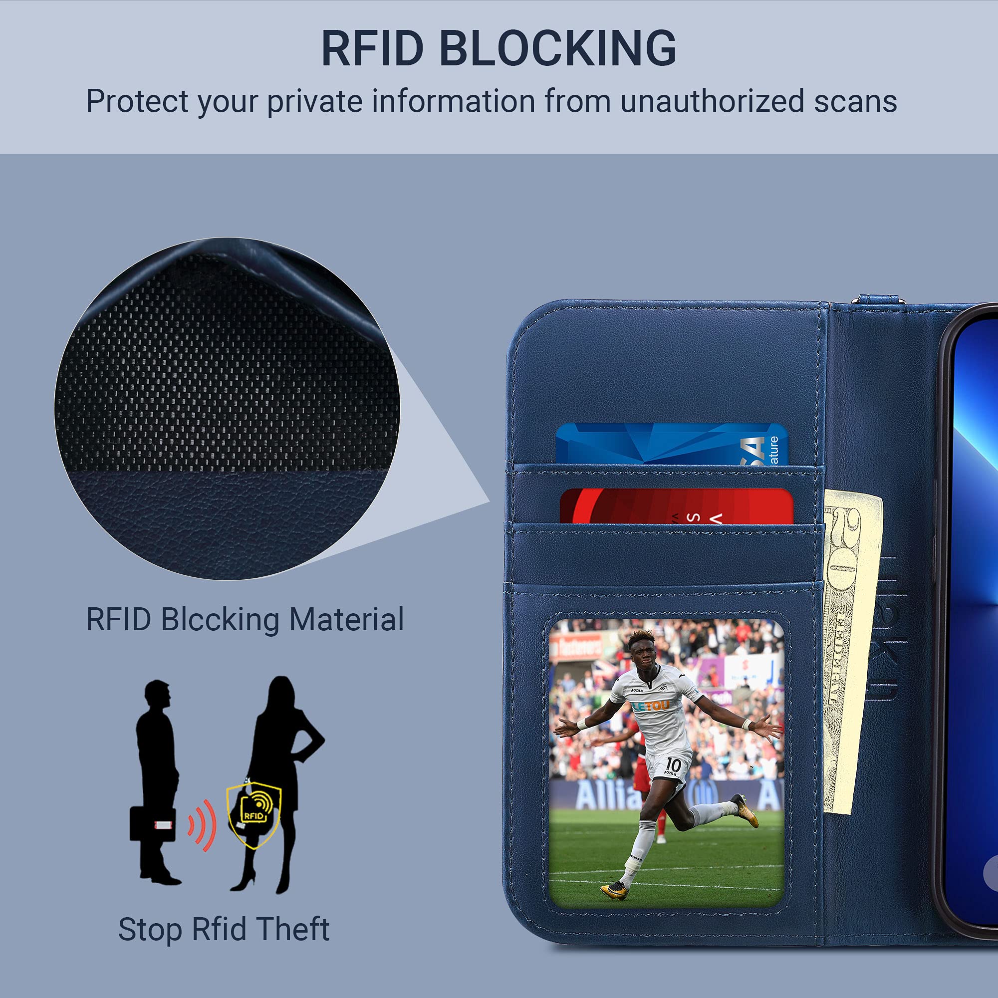 ULAK Protective Case Compatible With IPhone 13 Wallet Leather Protective Case With Card Holder Stand Function Protective Case For Women Girls Designed For IPhone 13 6.1 Inch Blue Marble
